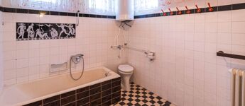 Fűtés: cirkó gázkazán, radiátoros hőleadással, kiegészítésként, fatüzelésű kandalló