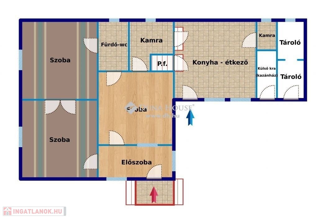 - HÁZ: 95 nm-es, 3 szoba, tágas konyha-étkező;