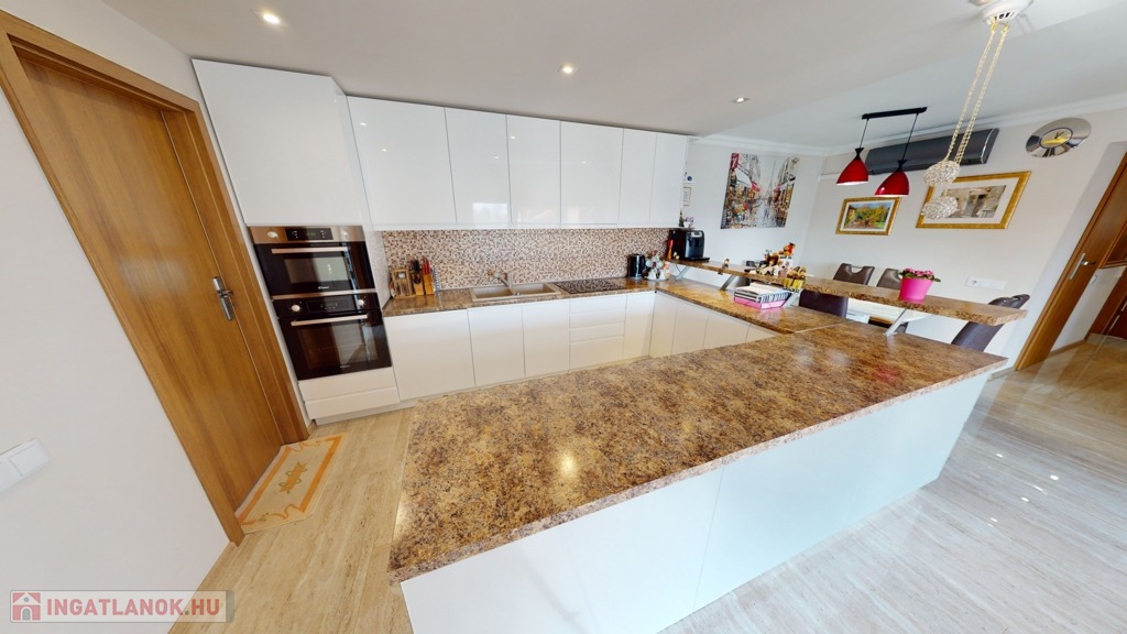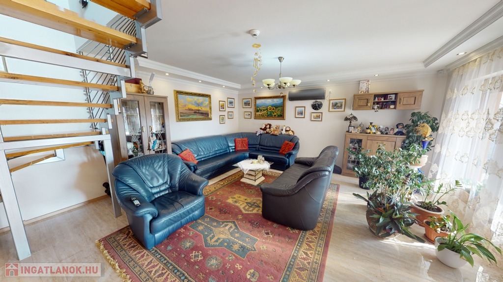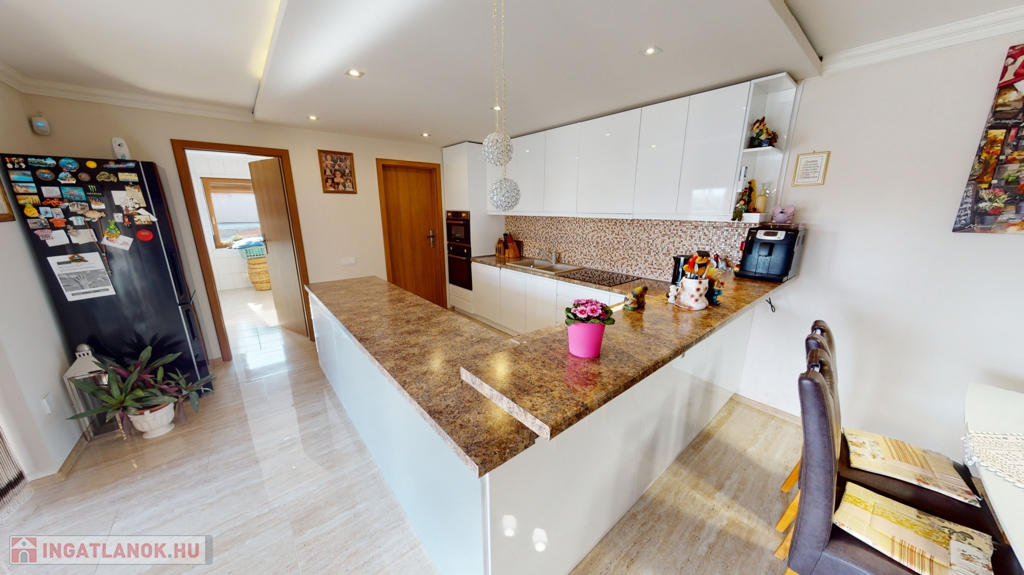 2 szinten: 4 hálószoba, 2 konyha, nappali, fürdőszoba, WC, beépített gardróbok, kamra