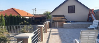 Térkövezett udvar, gyümölcsöskert nyári pihenéshez
