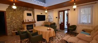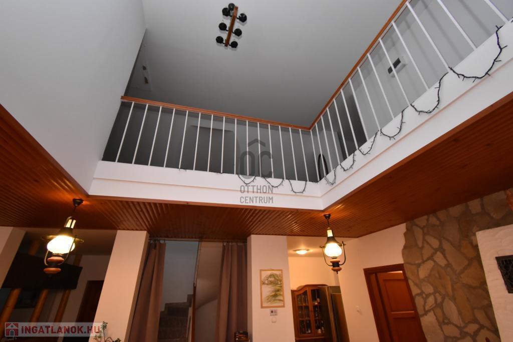 16 m2-es fedett teraszon keresztül jutunk be a 32,9 m2-es nappaliba, földszinten még 4 szoba, közlekedő, 4 fürdőszoba-WC, konyha, valamint a külön lakrészben nappali-étkezővel, terasz, közlekedő, gardrób, zuhanyzó-WC helyiségek kerültek kialakításra.