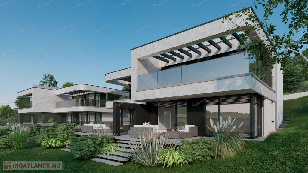 Megvételre kínálunk a 3. kerület egyik legszebb részén, az Ürömhegyen, egy minimál stílusú, ÖRÖKPANORÁMÁS, dupla garázsos, HÓSZIVATTYÚS, teraszos, erkélyes, 165 nm-es, 5 szobás, dupla komfortos luxus ikerházat. Az ingatlan egy villaparkban épül, ennek megfelelő műszaki tartalommal és kivitelezéssel.