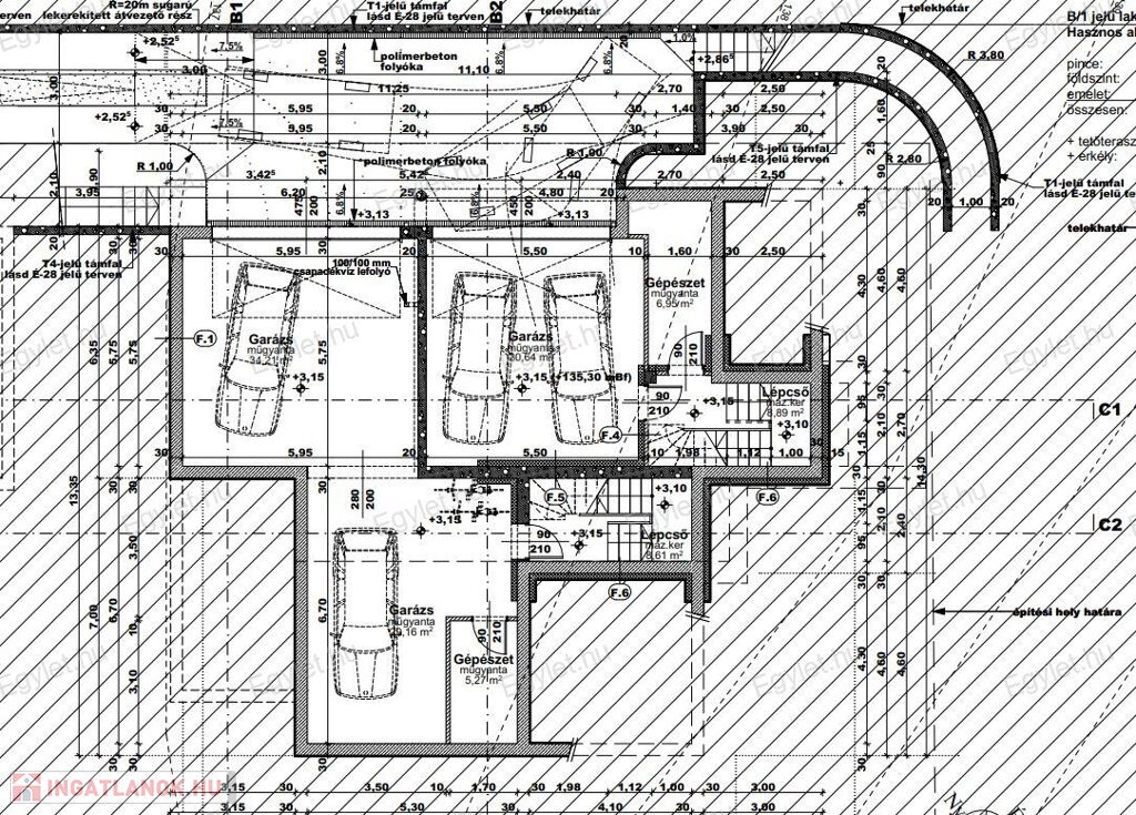 Helyiség lista a garázs szinten: