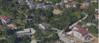 Az ikerház másik felét egy hasonló elrendezésű lakóingatlan képezi valamivel kisebb telekrésszel, mélygarázsi szint nélkül, felszíni parkoló beállókkal. Ennek kínálati ára: 222,5 millió Ft.