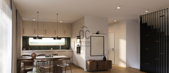 A lakótér mérete nettó 128,5m2, amely tökéletes elosztást kínál. A földszinten tágas nappali-konyha-étkező, előtér, fürdő és egy háztartási helyiség, míg az emeleten 3 hálószoba és 3 fürdőszoba kap helyet a mellékelt alaprajzok szerinti ideális elrendezésben. A nappaliból leválasztva akár egy 5. szoba is kialakítható eseti igény szerint.