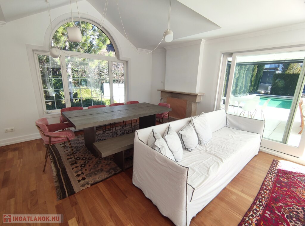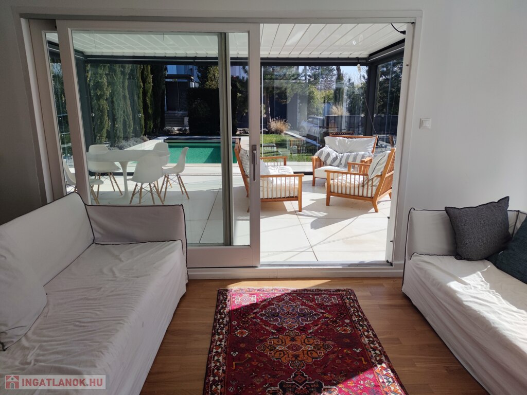 The 3-storey, beautiful house, built in the early 2000s on a quiet, intimate plot, faces southeast. In 2019, during the renovation, a spacious, glazed covered terrace/winter garden was added, a heated pool was installed, and the sanitary facilities and built-in wardrobes were replaced.