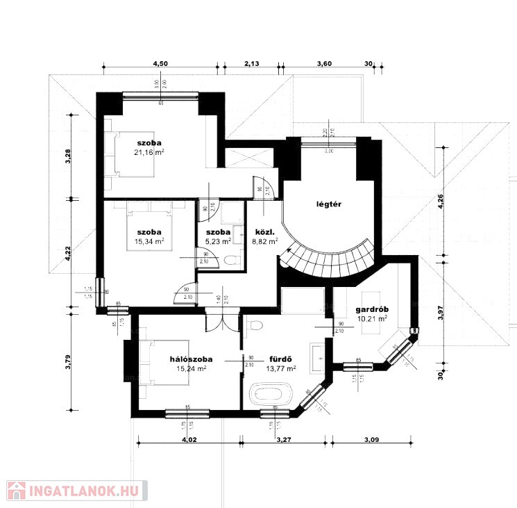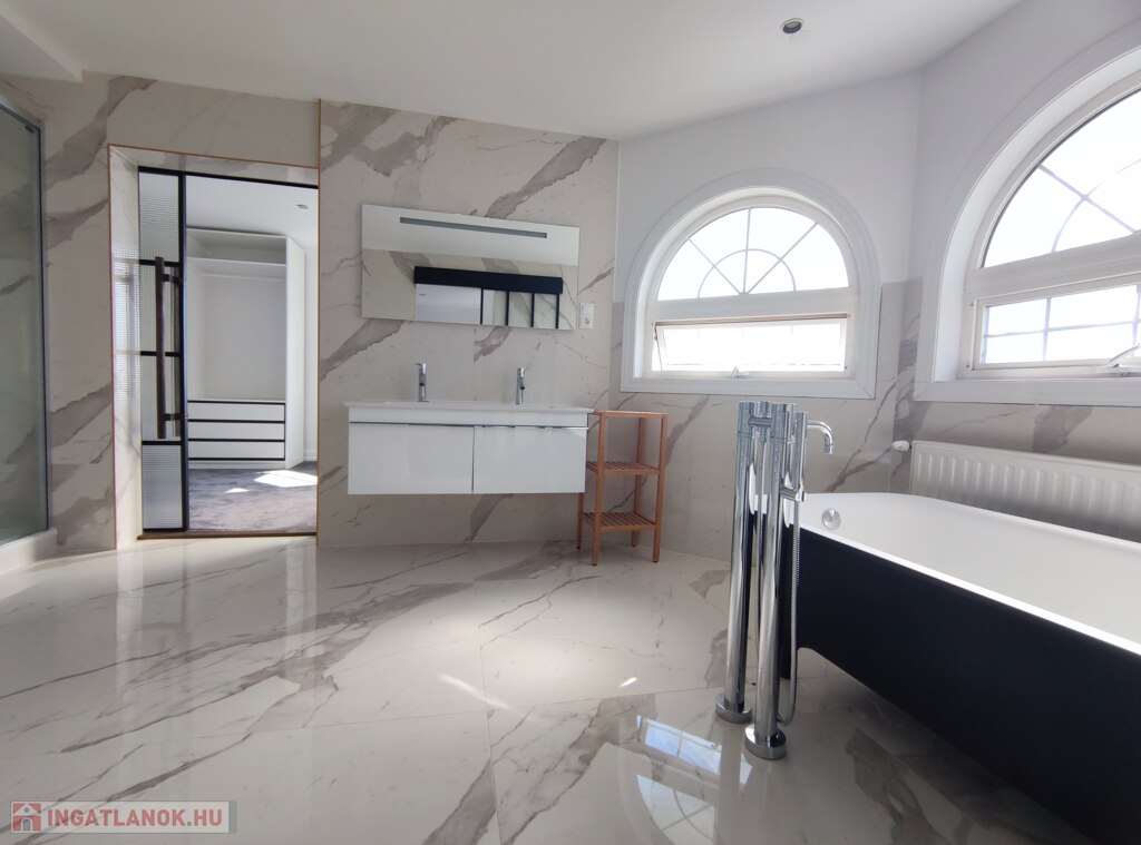 emelet: 3 külön bejáratú, légkondis hálószoba, 2 fürdőszoba, gardróbszoba, panoráma