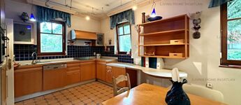 A detached house of 270 sqm for sale in a quiet, family house environment, close to nature. The entire lower floor is not included in this square meter. The property is also suitable as a business premises, as the yard can comfortably park several cars. A yoga studio used to operate in the house, taking advantage of the lower floor. The 716 sqm landscaped garden surrounded by large trees and the terrace on the higher level provide a pleasant, peaceful place for relaxation and gatherings of friends.
