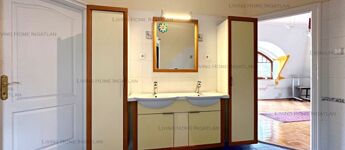Csendes, családi házas környezetben, közel a természethez eladó egy 270 nm-es lakóterű önálló családi ház. A teljes alsó szint ebben a négyzetméterben nincs benne. Az ingatlan alkalmas akár vállalkozás telephelyének is, hiszen az udvaron több gépkocsi is kényelmesen parkolhat. A házban egyébként egy jóga-stúdió működött, kihasználva az alsó szint lehetőségeit. A 716 nm-es parkosított, nagy fákkal körülvett kert és a magasabban lévő terasz kellemes, nyugalmas helyet biztosít a pihenésre, baráti összejövetelekre.