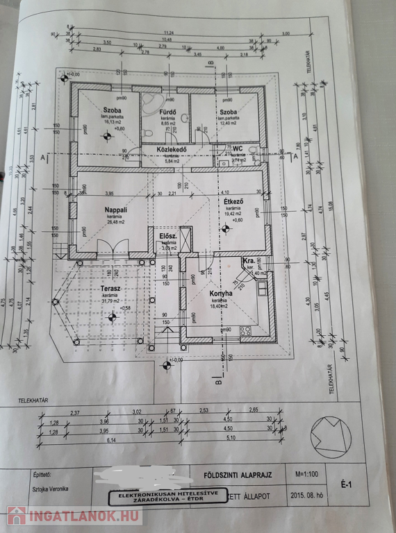 1. lakás 3 db 8nm szoba, 15nm szoba, gardróbszoba, zuhany, 22nm konyha-nappali- étkező együttese.