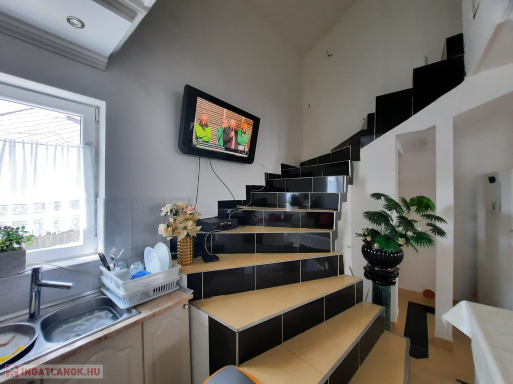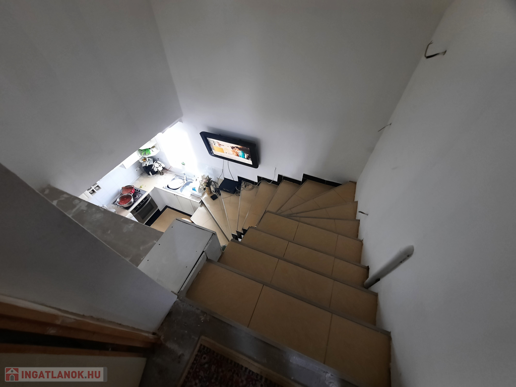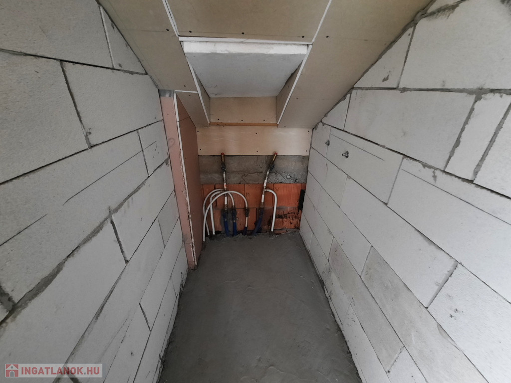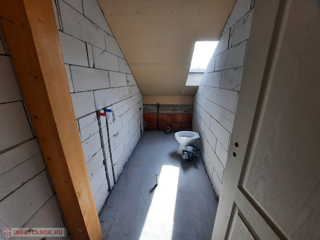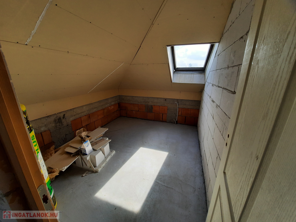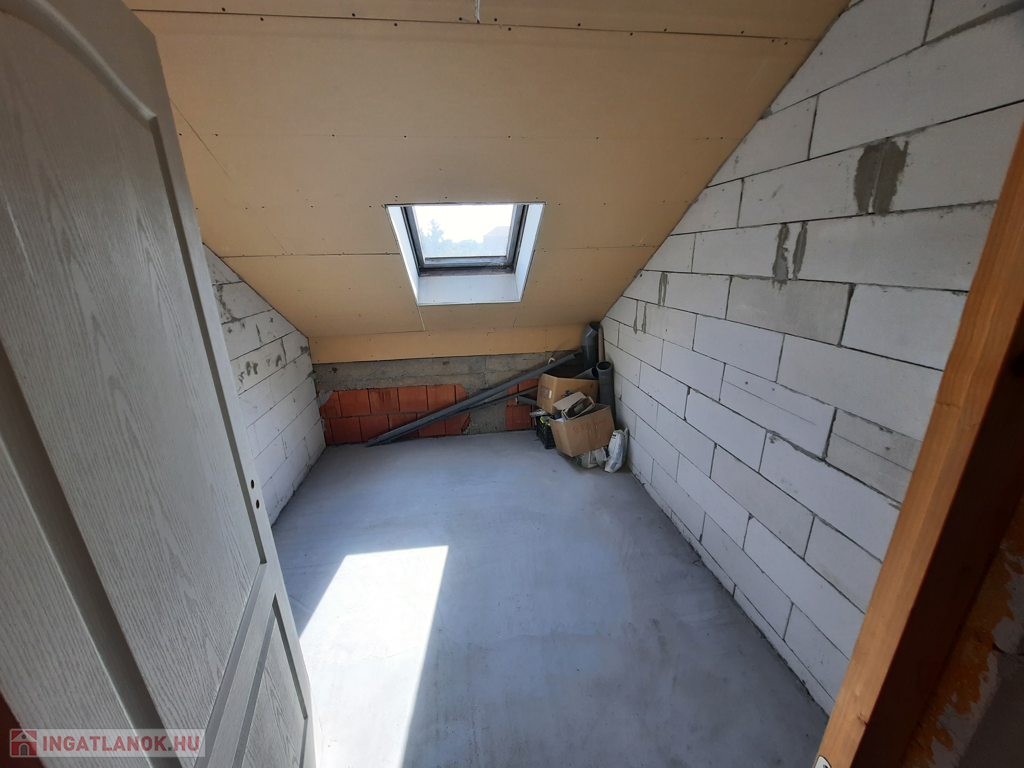 A tetőtérbe a nappaliból vezet fel lépcső, ahol kettő lakást alakítottak ki. A másik lakásnak kintről tervezték a feljáratot. A lakásokban az ablakokat behelyezték, válaszfalak felhúzva, betonaljzat letéve, becsövezve, de bármi változtatható igénynek megfelelően.