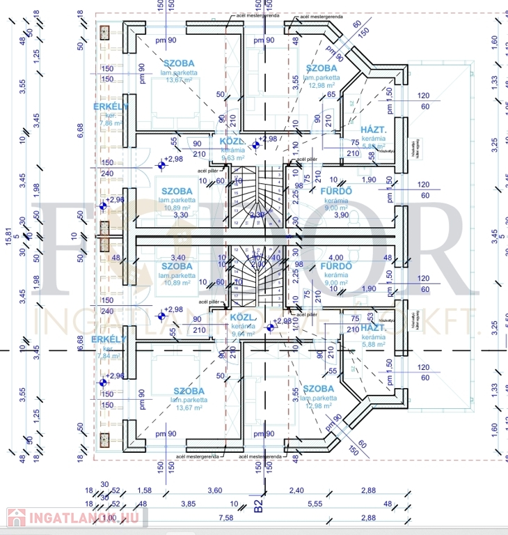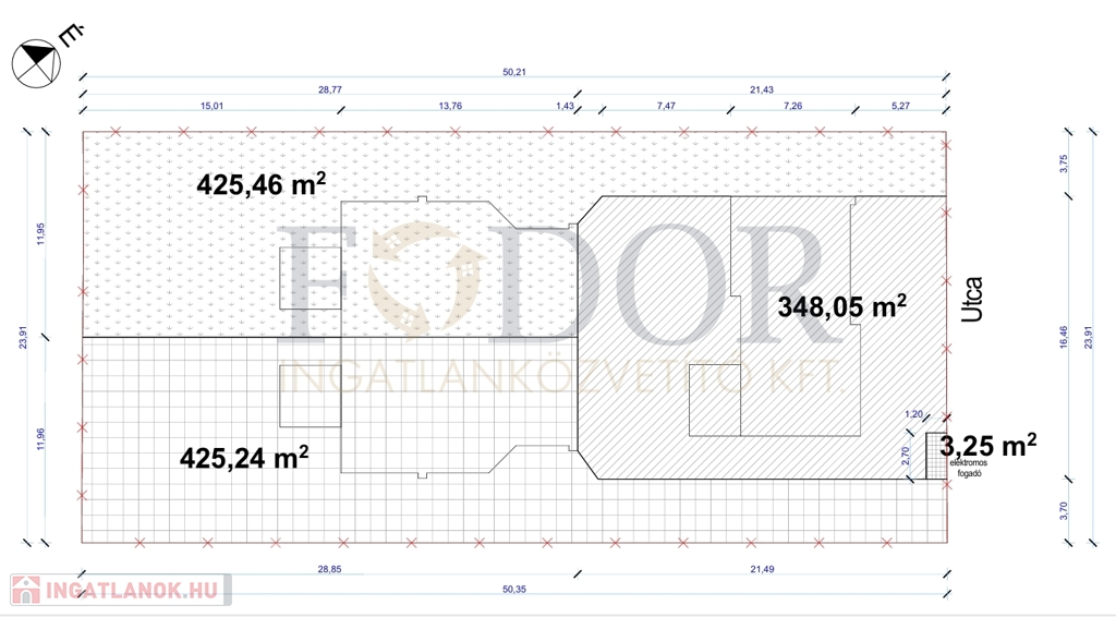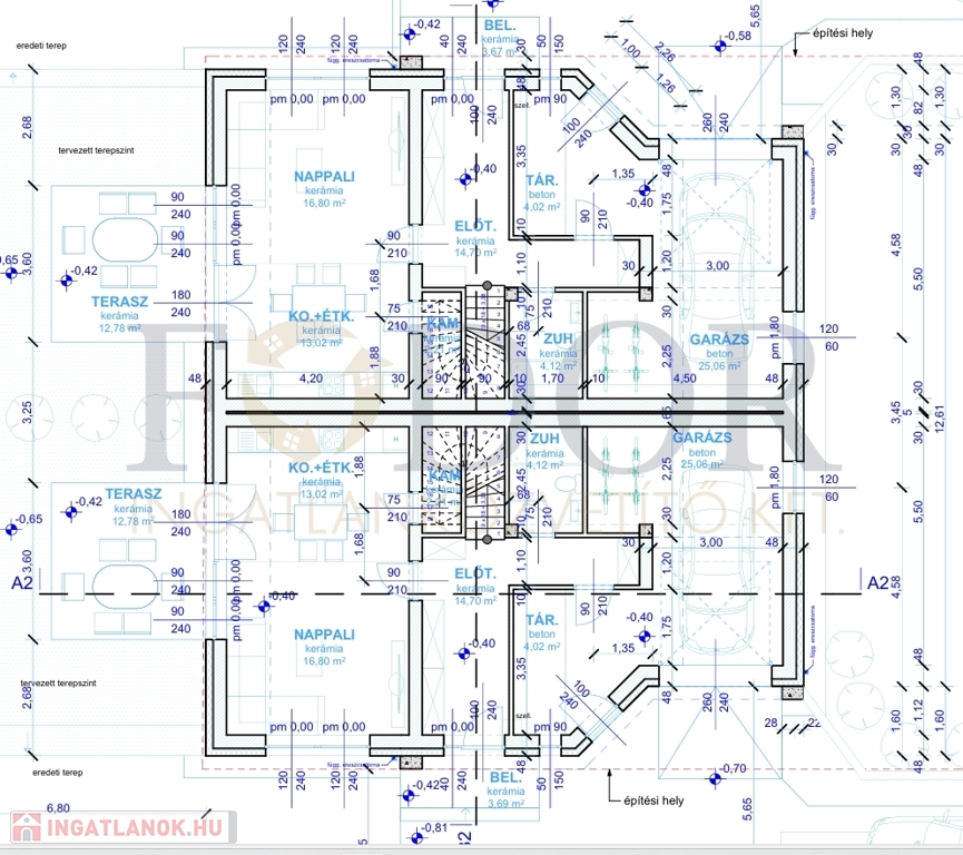 • Telekméret: Önálló családi ház 348 m², Ikerházak külön-külön: 425 m²