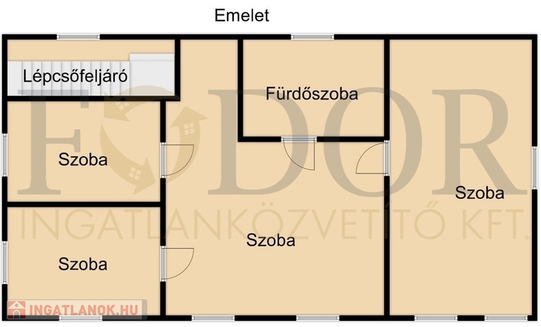 -Lépcsőfeljáró, pihenő, nappali, 3 hálószoba, fürdőszoba-WC