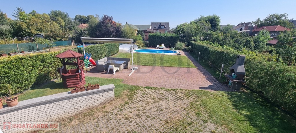 Eladásra kínálok a XVIII. kerület Újpéteri-telep frekventált elhelyezkedésű részén egy kis kastélyt idéző, exkluzív, minden igényt kielégítő, 280 nm-es, nappali + 5 szobás, kétszintes, alápincézett, garázsos családi házat! Az ingatlanhoz egy gondosan karbantartott, parkosított, 970 nm-es kert tartozik, automata öntözőrendszerrel ellátva, valamint egy felújított, polikarbonáttal fedett, 8x4 méteres medence is növeli az otthon kényelmét. Ez a ház tökéletes választás mindazok számára, akik a nyugalom, a kényelem és a kertvárosi életstílus harmóniáját keresik.