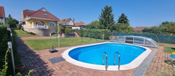 -Medence: 8x4 méteres, 1,5 méter mély, polikarbonáttal fedett, felújított, külön fűtést nem igényel