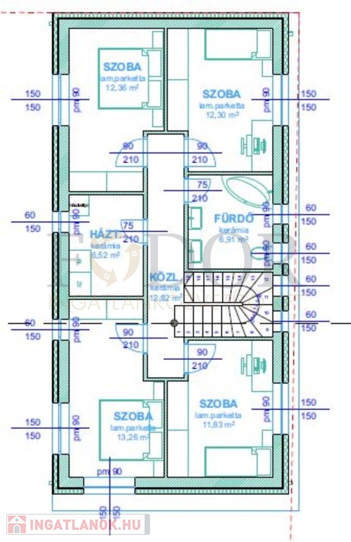 • 30-as főfal +10 cm-es tégla válaszfalak+ 15 cm homlokzati szigetelés