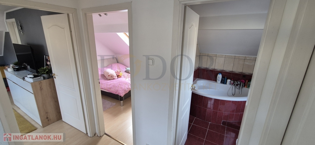 Amikor belépünk, az előszobából egy tágas, világos élettér tárul elénk. A konyha–étkező–nappali együttese a ház igazi szíve – itt zajlanak a hétköznapok reggeli indulásai, a közös vacsorák, az ünnepi pillanatok. A konyhából egy fedett teraszra léphetünk ki, ahonnan a kert látványa fogad – zöld, rendezett, hívogató. A földszinten egy külön szoba, fürdőszoba és kamra is helyet kapott, az emelet pedig két szobát és egy további fürdőt rejt – ideális elrendezés családosok számára. A ház teljes bútorzata a vételár részét képezi, így az otthon eleganciája már az első pillanattól adott.