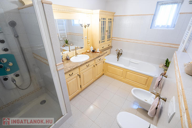 A fürdőszobákban kád és zuhanyzó is helyet kapott, valamint a földszinten egy mosókonyha is rendelkezésünkre áll.