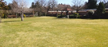A kertész által kiválóan karbantartott kertben az örökzöldekkel övezett gyepszőnyeg a legmagasabb minőségi elvárásokat is kielégíti.