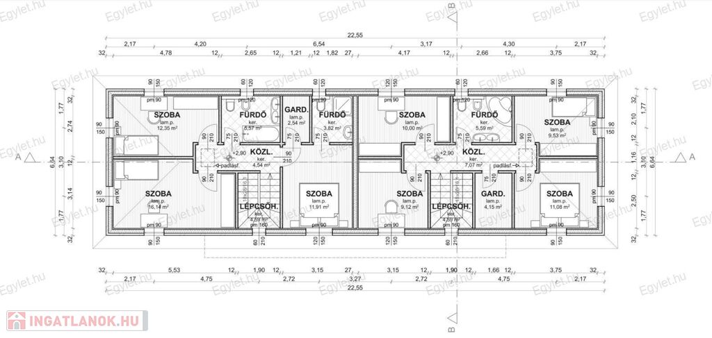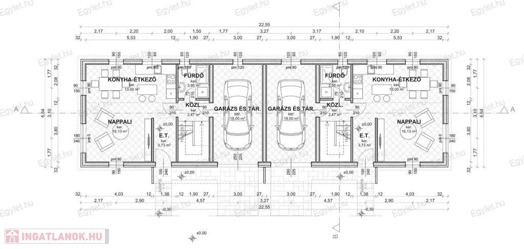 Hátsó lakások: 437 nm telekrésszel, nappali + 4 szobával Ára: 149.000.000 Ft