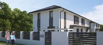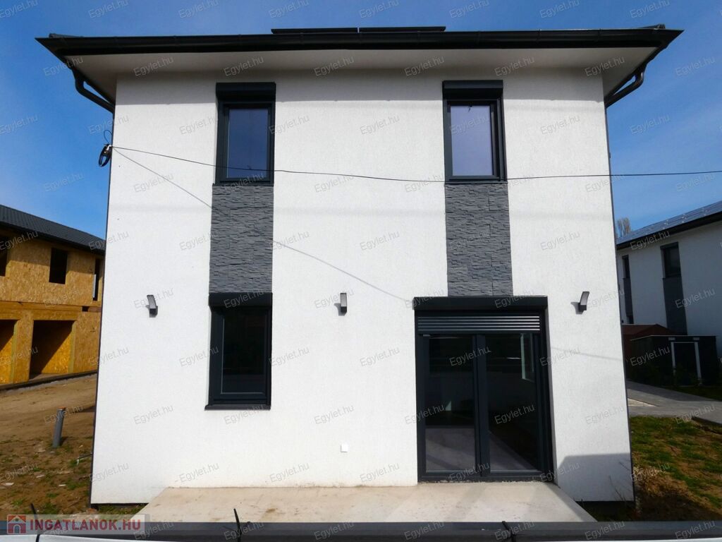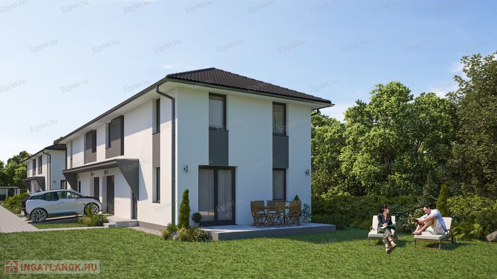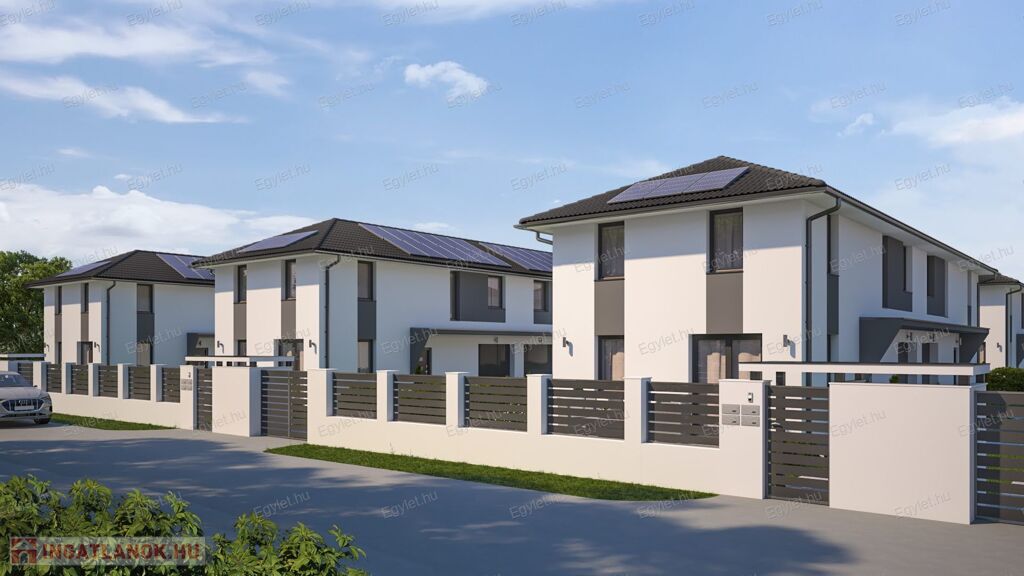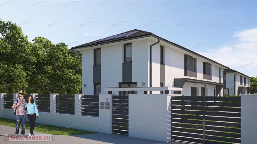Megvételre kínálunk a 17. kerület egyik legszebb részén, Rákoscsaba-Újtelepen, egy modern, könnyűszerkezetes, garázsos, NAPELEMES, teraszos, 118 nm-es, 4 vagy 5 szobás, gardróbos, 2 fürdős újépítésű ikerházat.