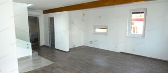 Földszinten: konyha, étkező, nappali, előszoba, fürdő, beépített lépcsőfeljáró, fűtött garázs.