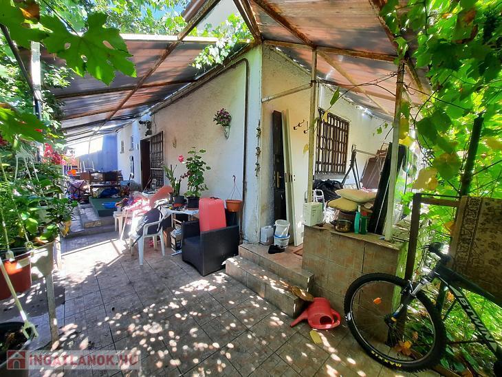 A telek végében egy tégla melléképület található, illetve autóbeállási lehetőség adott.