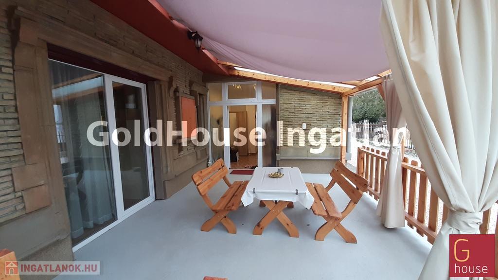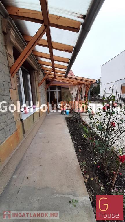 Telek: 578 nm. Gyönyörűen gondozott kert gyümölcsfákkal, fúrt kúttal, 20 nm-es garázzsal, terasszal.