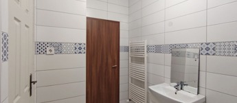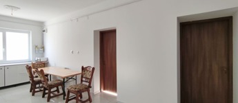 A földszinten egy nagyon tágas, étkezős, hallos 21 nm-es, gépesített konyhába érkezünk, innen a bejárattal szemben nyílnak a szobák, a 24 nm-es nappali és mellette a 20 nm-es hálószoba. A konyha jobb oldalán pedig a 9 nm-es épített zuhanyzós fürdőszobába juthatunk, amelyből az 1,7 nm-es toalett nyílik, ahol a kazán is található. Az emeleten a kis előtérben szemben az 1,6 nm-es toalett nyílik. Az előtérből jobbra a folyosó jobb oldalán középen a kétszárnyú ajtón keresztül a nagyméretű, 30 nm-es nappaliba juthatunk. Mellette szintén jobbra a 20 nm-es hálószobát, a folyosó végén pedig a 10,2 nm-es kisebbik szobát találjuk. A közlekedőben a folyosó elején balra nyílik a 4,2 nm-es fürdőszoba és 9,6 nm-es gépesített, konyhabútoros és étkezős konyha. A konyhából pedig a 6 nm-es fedett teraszra léphetünk ki.