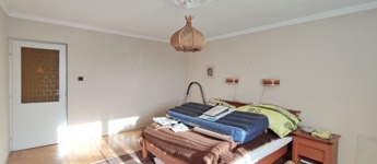 A családi ház az 1950-es évek elején épült betonozott alapzattal, kis pincével, amelyre 1986-ban ráépített a tulajdonosa egy új szintet, cserép héjalással, északnyugati fekvéssel, remek elosztású, szintenként nagyon tágas és világos szobákkal. A ház minden szempontból kellően világos.