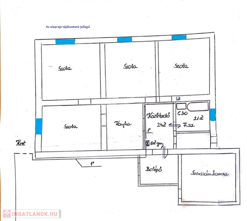 A ház négy szobával rendelkezik, ideális választás lehet nagyobb családok számára vagy akik szeretnék saját ízlésük szerint kialakítani otthonukat.