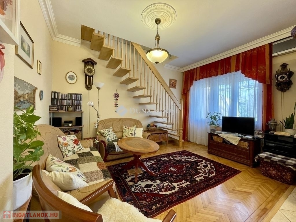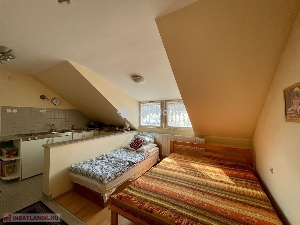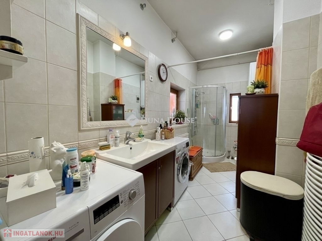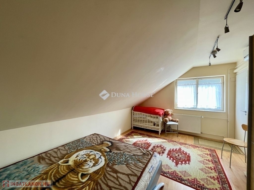 Eladó per- és tehermentes ikerház Csepel egyik legszebb utcájában!Megvételre kínálunk egy téglaépítésű, két szintes családi házat Budapest XXI. kerületének egyik legkedveltebb részén, a Hollandi úton, közvetlenül a Kis-Duna közelében.Az 1970-es években befejezett ingatlan az évek során több felújításon esett át, így műszaki állapota folyamatosan karbantartott:2012-ben teljes szigetelést kapottKülső-belső festés-mázolás történtÚj radiátorok és új kazán került beszerelésre8 éve klímaberendezések lettek telepítve (mindkét szinten komfortos hőmérséklet télen-nyáron)A földszinti nagy fürdőszoba 2020-ban teljes körű felújításon esett átA ház elosztásaFöldszint:Kényelmes előtérTágas, világos konyha-nappali, utcára és kiserdőre néző terasszalNagyméretű hálószoba, kertkapcsolatos, csendes terasszal tökéletes pihenőhelyFelújított, kádas fürdőszoba WC-vel, mosógép számára kialakított hellyelA nappaliból lépcső vezet a tetőtérbe.Tetőtér:Itt egy teljes értékű, külön lakás került kialakításra:NappaliKonyhaKádas fürdőszobaTágas hálószobaKorábban külső lépcsőn keresztül is megközelíthető volt, így igény esetén ismét teljesen különálló lakássá alakítható kiváló lehetőség többgenerációs együttélésre vagy kiadásra.Kert, parkolás és melléképületA kert ideális méretű: könnyen gondozható, mégis van hely veteményesnek, játszótérnek vagy akár kutyának is.Az ingatlanhoz tartozik egy 15 m²-es saját garázs, valamint az udvarban további 2 autó számára kényelmes parkolási lehetőség biztosított.A főépület mögött található egy 42 nm-es melléképület, amely egy önálló kis lakás:KonyhaFürdőszobaNappali-hálószobaFelújítandó állapotú, de akár egy tisztasági festés után is lakható kiváló lehetőség bérbeadásra, vendégháznak vagy vállalkozási célra.KörnyezetA ház elülső teraszáról csodás kilátás nyílik a Kis-Dunát övező kiserdőre. A Hollandi út valódi rekreációs paradicsom:200 méterre található a Ráckevei DunaágA közelben elérhető a Csepeli StrandfürdőKajak-kenu telepModern játszótérA Csepeli kompÉs mindössze 200 méterre egy kiváló cukrászdaIdeális választás azoknak, akik természetközeli, vízparti környezetben szeretnének élni, mégis Budapesten.