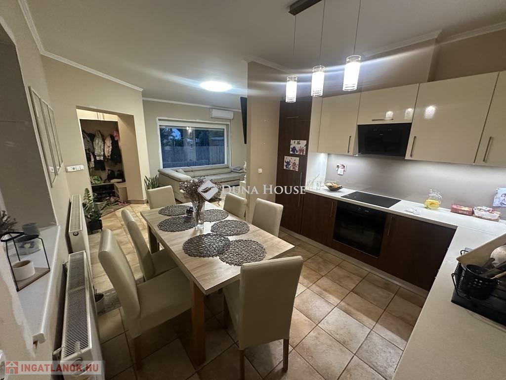Cegléden eladó egy 103,74 nm-es négy szobás amerikaikonyhás nappalival rendelkező tégla építésű családi ház. Az épület egy 550 nm-es körbekerített telere épült 2005-ben. Az épületet 2018- 2023-között folyamatosan korszerűsítették. A felújítás soron kicserélték az összes külső nyílászárót melyek 3 rétegű üvegezést és redőnyt kaptak. A fűtésrendszert modernizálták új kondenzációs gázkazán került beépítésre és egy vegyestüzelésű kazán. Az elektromos hálózatot is újra húzták, 3 fázis ipari áramtalálható az otthonban. A fűtés gázcirkón és radiátorokon keresztül történik. A belső elosztása a családi háznak négy szoba, konyha-étkező-nappali, kamra, közlekedő, fürdő, wc, kazánház, terasz. A kert parkosított öntözéséről fúrt kút gondoskodik. Az otthon tehermentes rövid határidővel költözhető! Ha megtetszett Önnek az ingatlan kérem hívjon bizalommal a hét bármely napján akár hétvégén is.