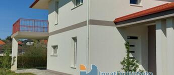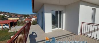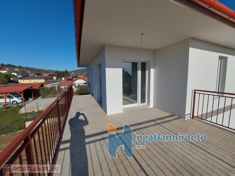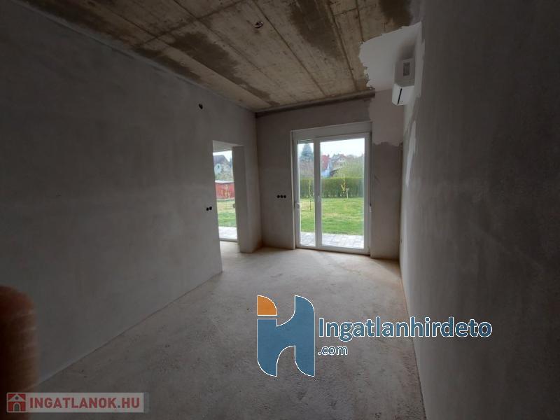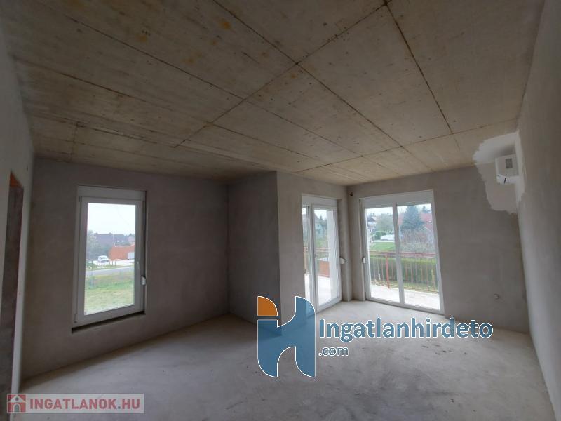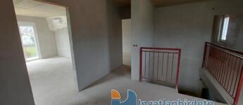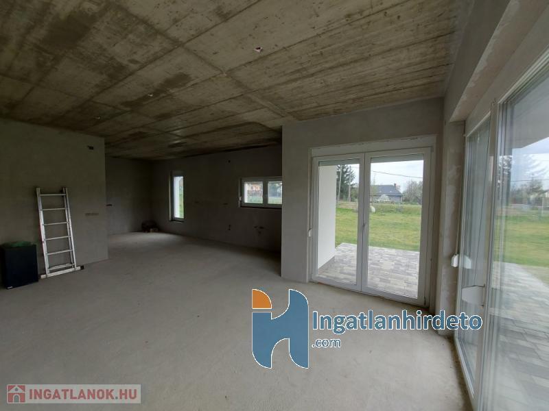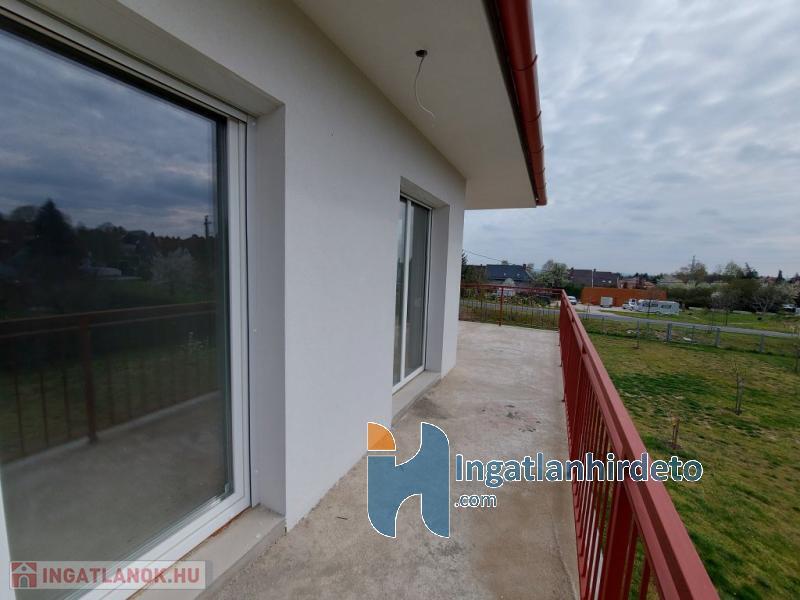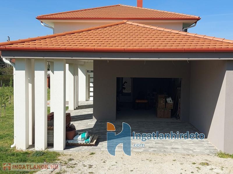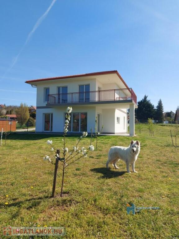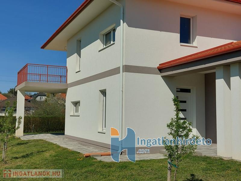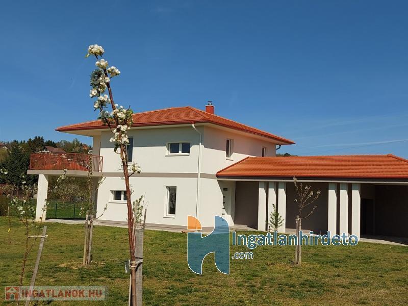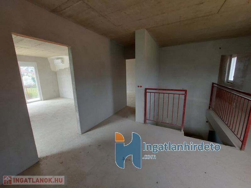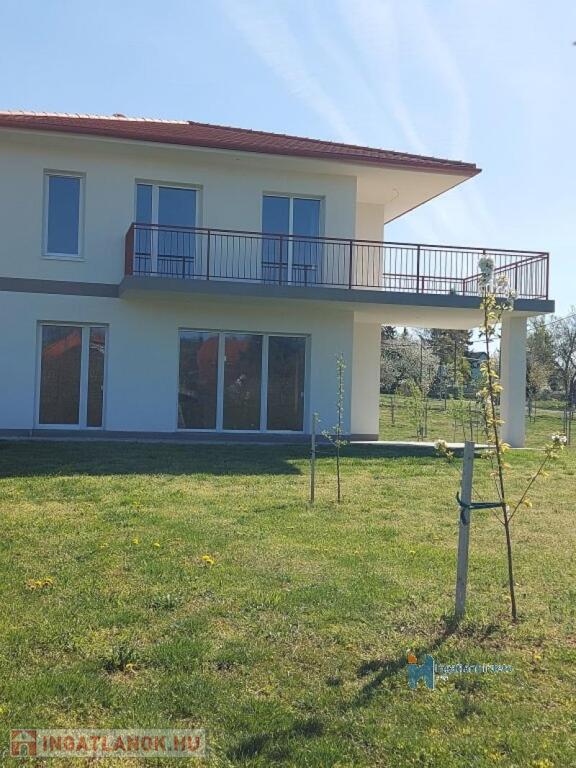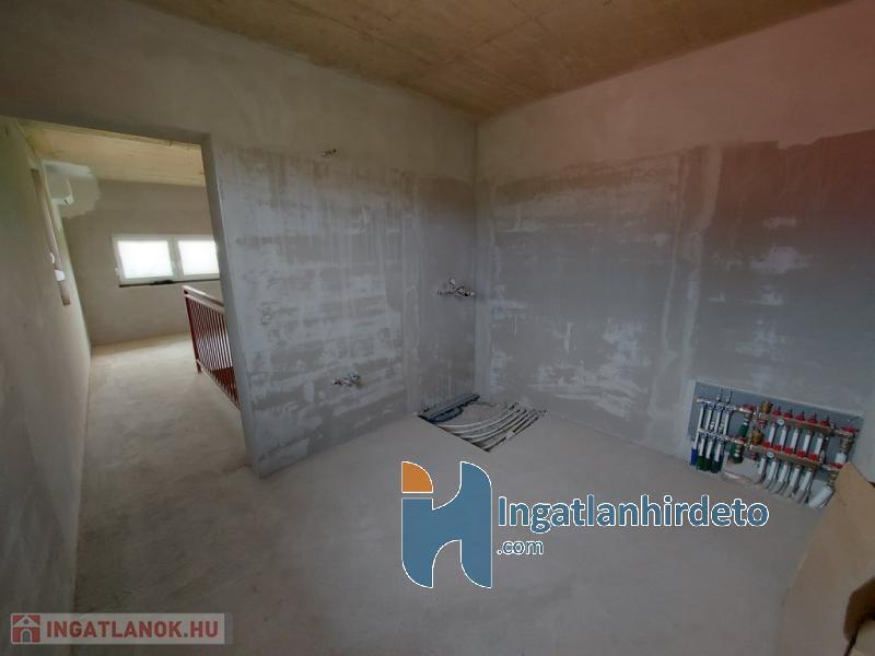 A nappaliban kandallós fűtésre is van lehetőség, akár az egész épület padlófűtésére használható módon. Földszint előszoba-nappali-konyha-étkező egy légtérben, hálószoba saját fürdővel, külön bejáratú Wc, gépészeti helyiség. Emelet tágas előtér, két nagyméretű hálószoba, nagy fürdőszoba Wc-vel. Földszinten nagy étkező-nappali kapcsolatos terasz, emeleten ugyan akkora méretű erkély került kialakításra. A földszinthez kapcsolódó garázs, és fedett kocsibeálló is készült. Az épülethez tartozó telek 1200 m2 alapterületű, ami mellett egy önálló öszközműves építési telek szintén eladó.