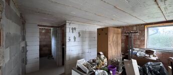 * alsó szinten konyha–étkező, nappali, szoba, fürdő kialakítható