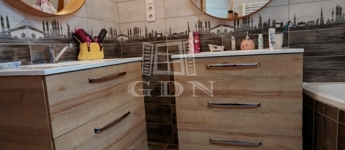 FÖLDSZINT – 4 szoba + konyha + kamra + óriási fürdő + wc , nagyon nagy előtér a vállalkozás miatt.