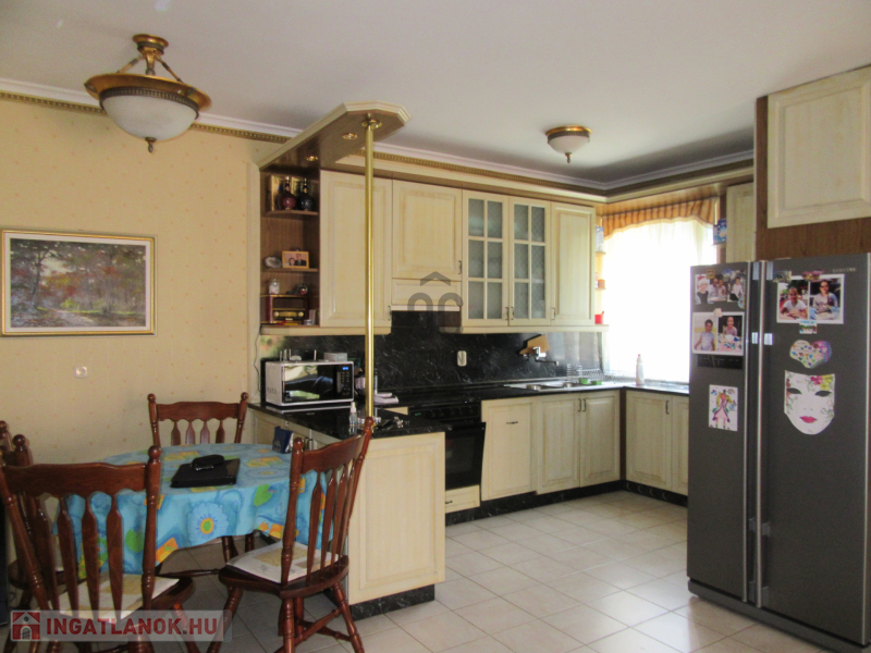 Debrecen Széchenyi kert csendes kis utcájában, két generációs,1997-ben 30 cm-es téglából épült, szigetelt, klimatizált (inverteres hűtő-fűtő),170 nm-es (135 nm + 35 nm minigarzon/iroda), 6 szobás, dupla garázsos, riasztórendszerrel ellátott, nagy teraszos (45 nm), alápincézett (54 nm), 2012-ben felújított önálló családi ház 401 nm-es telken eladó.