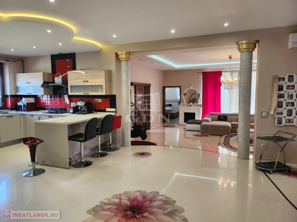 Az ingatlan felszereltsége, kialakítása és kinézete egyértelműen exkluzívnak mondható. További előny, hogy egy nagy telek áll rendelkezésünkre, amelyen rengeteg vágyunkat megvalósíthatjuk, virágos kert, gyerekeknek játszótér, gyümölcsfák, stb.