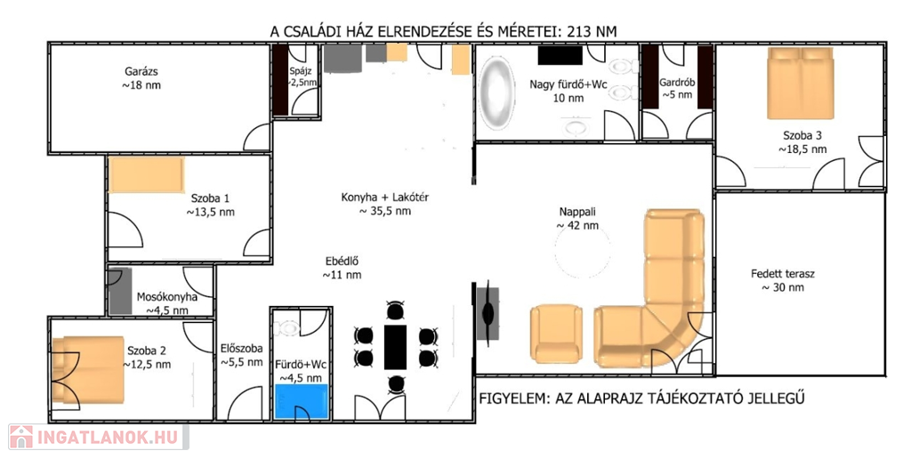 - ház alapterülete: 213 nm.