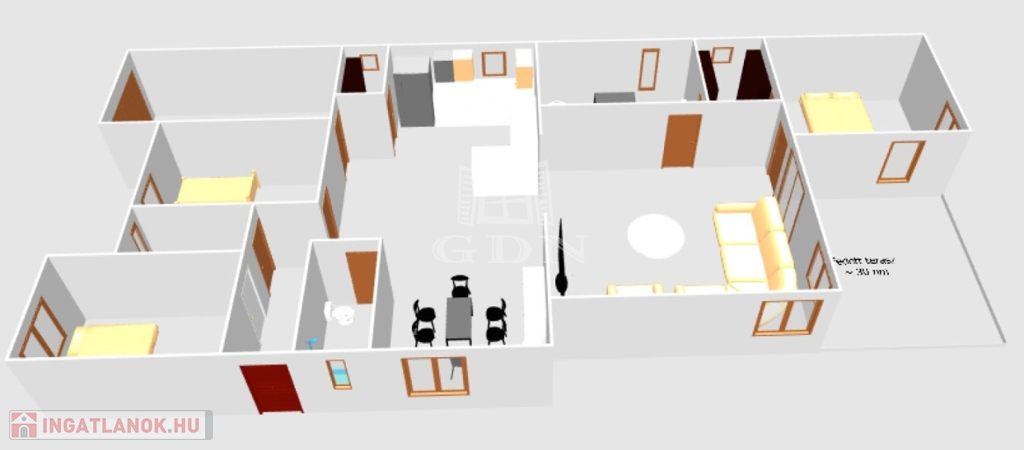 - nagy fedett terasz (30 nm).