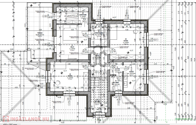 - Földszint : 183,69 m2 + 20,33 m2 fedett terasz