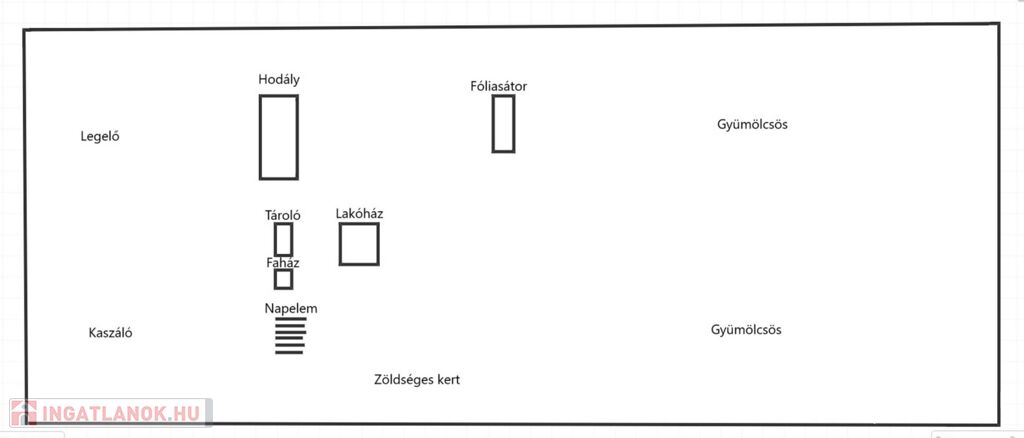 A területen található még egy 440 négyzetméteres állattartásra alkalmas hodály, több melléképület (faház 25nm, téglaépület 50nm) és több pince (25nm, 27nm, 8nm) is.