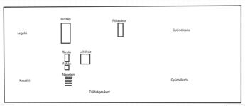 A főépület lakóingatlanként funkcionál, alapterülete 120 nm, melynek bejáratánál egy 40 nm-es terasz került kialakításra (sparhelttel és kemencével).