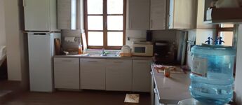 Az épületben található 2 szoba, egy konyha-étkező-nappali, nagy fürdőszoba, előszoba, közlekedő, kamra/napelem központ. A fűtésről fa/bála tüzelésű kazán gondoskodik, a helyiségekben radiátorokkal, a melegvizet villanybojler biztosítja.