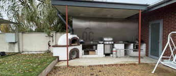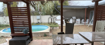- a kertben megtalálható egy hőszivattyúval ellátott fűthető medence, továbbá egy fedett kültéri konyha kemencével, mosogatóval