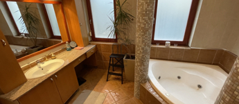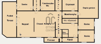 Helyiségei: hatalmas, világos, hangulatos konyha-étkező-nappali, 3 különnyíló szoba, 2 fürdőszoba (zuhanyzós és kádas), 2 wc, kamra, mosókonyha, gépészet, gardrób, dupla garázs.