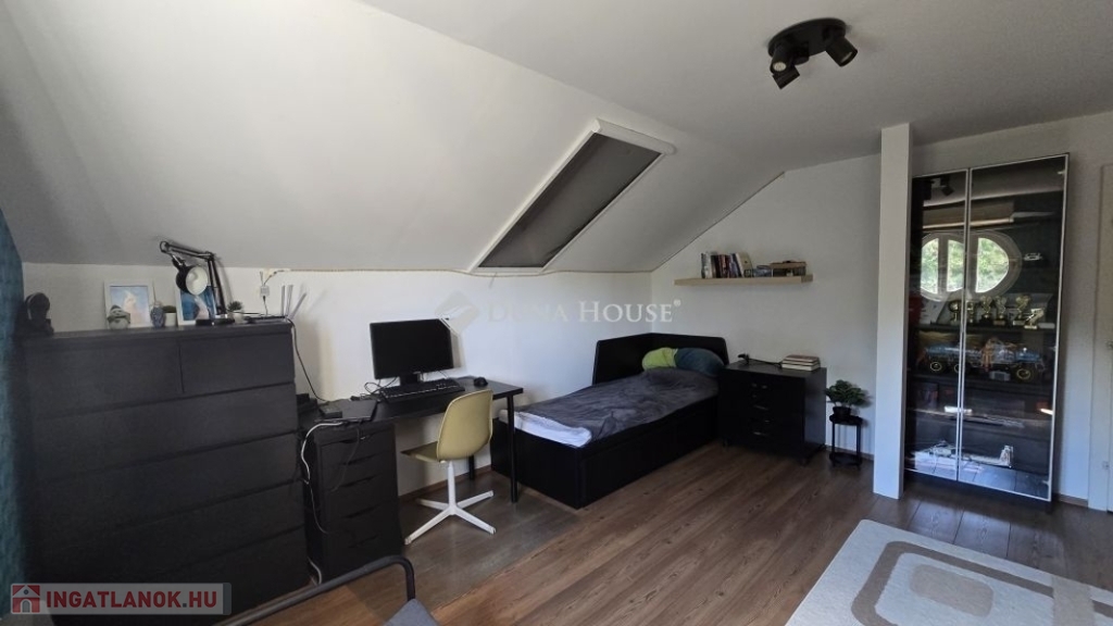 Az ingatlan tökéletes helyen van, tágas terei és a négy hálószoba egy nagyobb család számára is kényelmes lakhatást biztosít, az autók dupla garázsban parkolhatnak, a félszuterén szint pedig kiváló lehetőség tárolásra, vagy egyéb funkciók ellátására (konditerem, iroda, vendégszoba stb.).