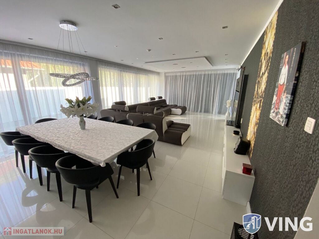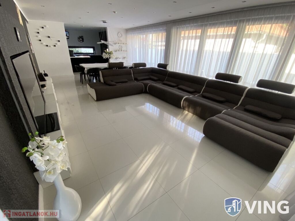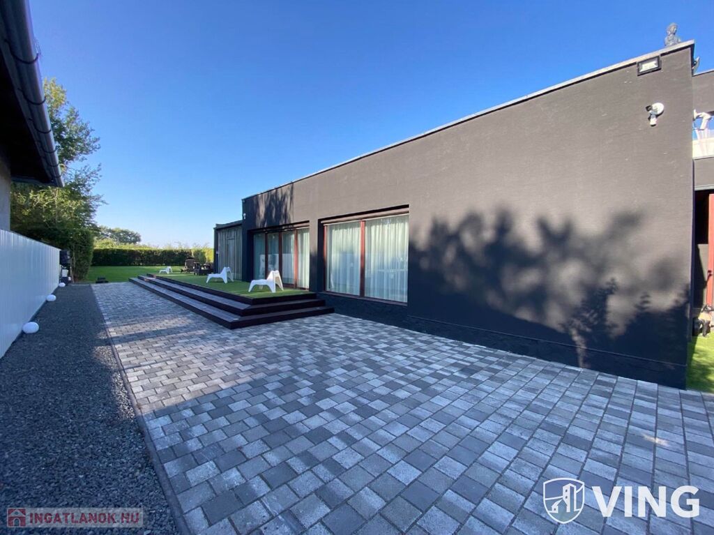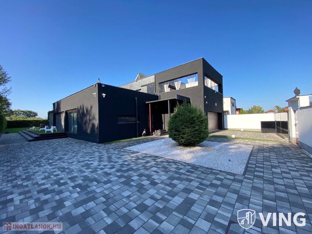 Domaszék új osztásában, eladó (szeged belváros 12 km, autópálya 2km) ez a minimál stílusú, két szintes, nappali +5 szobás, nettó 28O nm (+ garázs + teraszok) INTELLIGENS, LUXUS ingatlan.