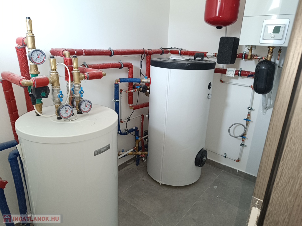 Fűtés,Meleg-víz: hőszivattyúról működő fűtésrendszer padlófűtéses hő leadással.