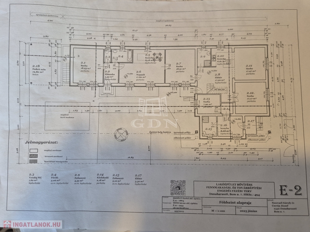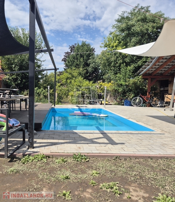 Dunaharaszti egyik kedvelt, lakóparki részén, kitűnő ellátottság mellett, aszfaltozott mellékutcából nyíló, 1150 m²-es összközműves, kúttal, medencével, több autó számára parkolási lehetőséggel rendelkező telken kínálunk eladásra egy két házat magába foglaló ingatlant.